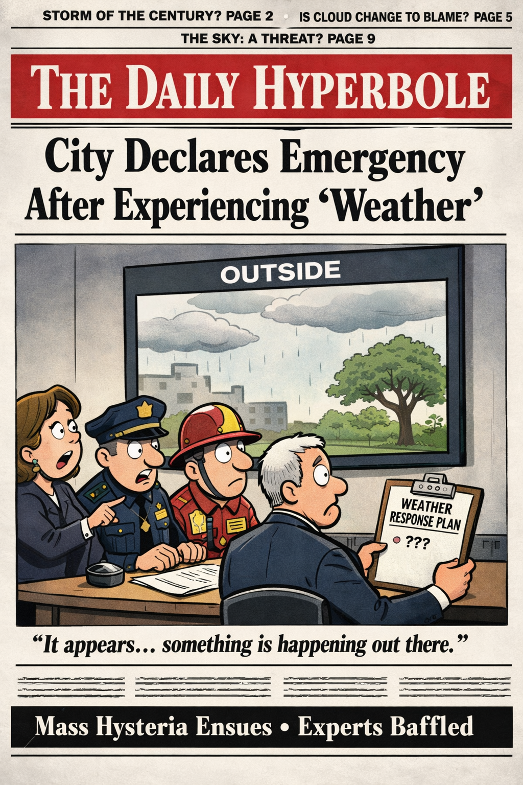 UNSPECIFIED MID-SIZED AMERICAN CITY — City officials declared a state of emergency Tuesday after residents were forced to endure what authorities confirmed was “actual, unfiltered weather,” a phenomenon many said they were unprepared for both emotionally and structurally.