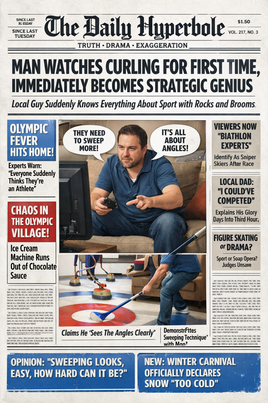 Local resident Kyle Patterson, 34, became a world-class curling strategist Tuesday night approximately six minutes after watching the sport for the first time in his life.